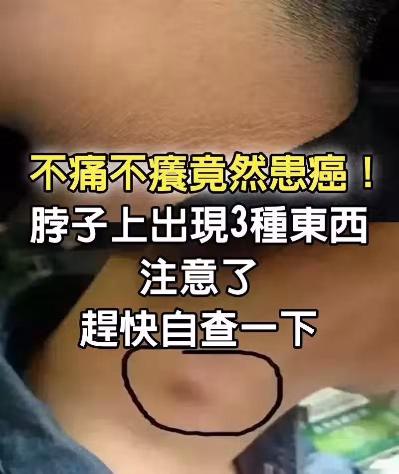 不痛不癢竟然患癌!脖子上出現「3種東西」注意了 趕快自查一下:說明癌細胞已醒
