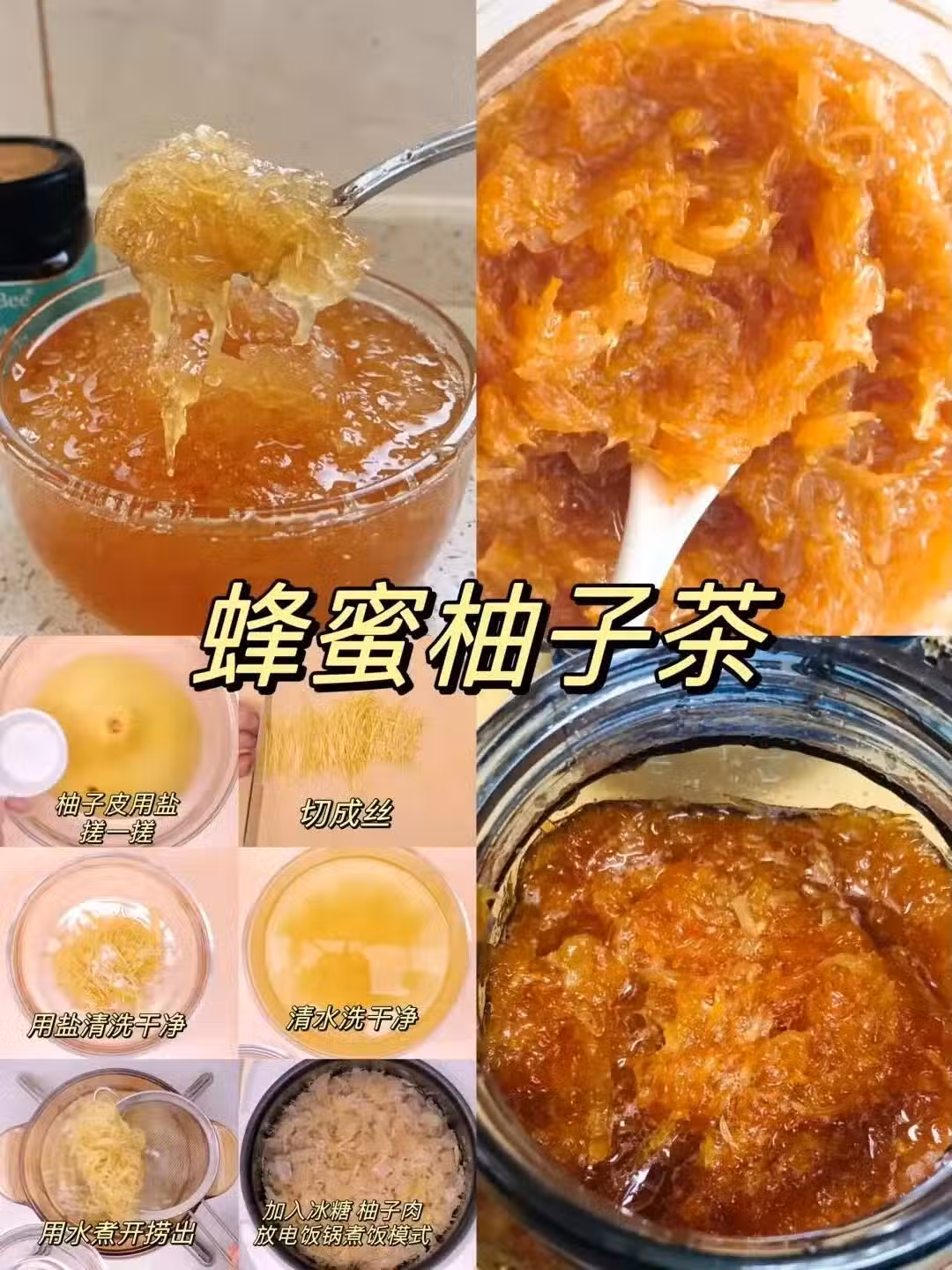 功效:蜂蜜柚子茶酸甜可口,具有潤喉舒緩、健脾和胃等功效,適合寒冷乾燥天氣飲用。
