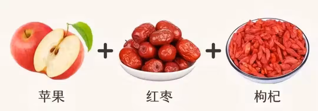 【食材】:蘋果、紅棗、枸杞