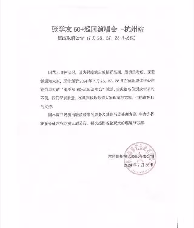 突發!張學友身體出狀況緊急取消今晚廣州演唱會,第4次因病告假