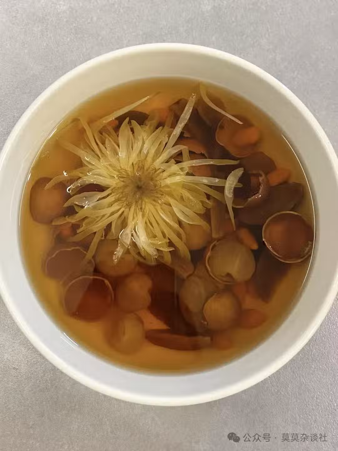 帶殼干桂圓6粒 | 紅棗4顆(去核掰開) | 枸杞5g | 菊花2朵 | 熱水500ml