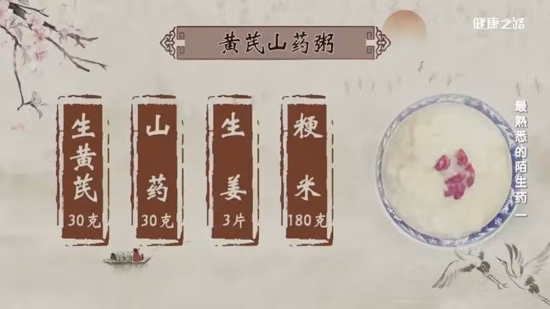 山藥健脾補肺,久服可以強壯體質;生薑發散風寒,與黃芪、大米一起熬粥,能夠益氣固表、抵禦外邪侵入、增強人體免疫力。