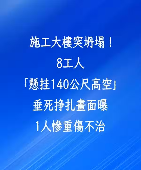 快訊/施工大樓突坍塌!8工人「懸掛140米高空」垂死掙扎畫面曝 1人慘重傷不治