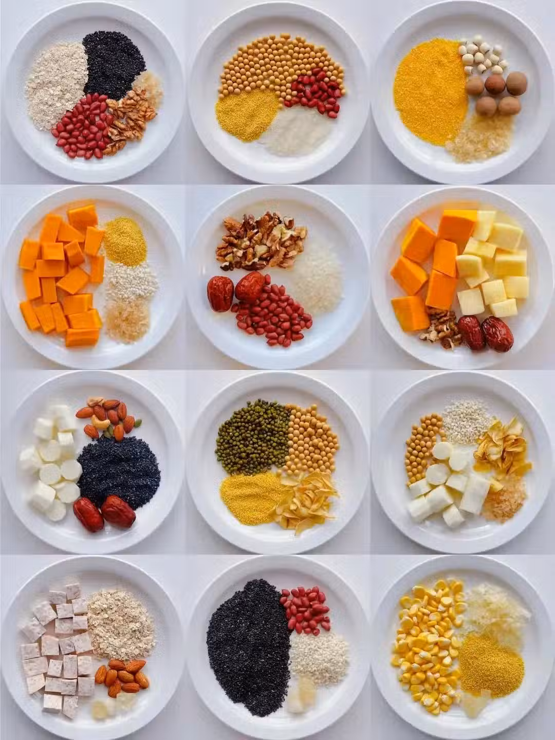 1.花生20g、燕麥10g、核桃10g、黑芝麻10g、冰糖5g