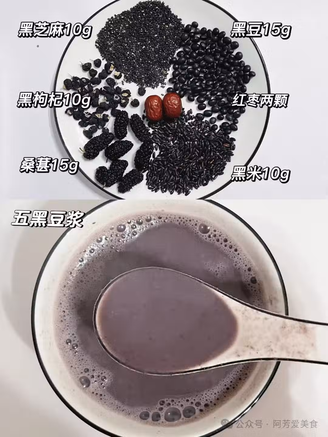 三黑花生薏米豆漿:這個豆漿比上面的雙黑薏米漿多了一份黑米,相比較來說會比雙黑豆漿的醇香度更高一點。
