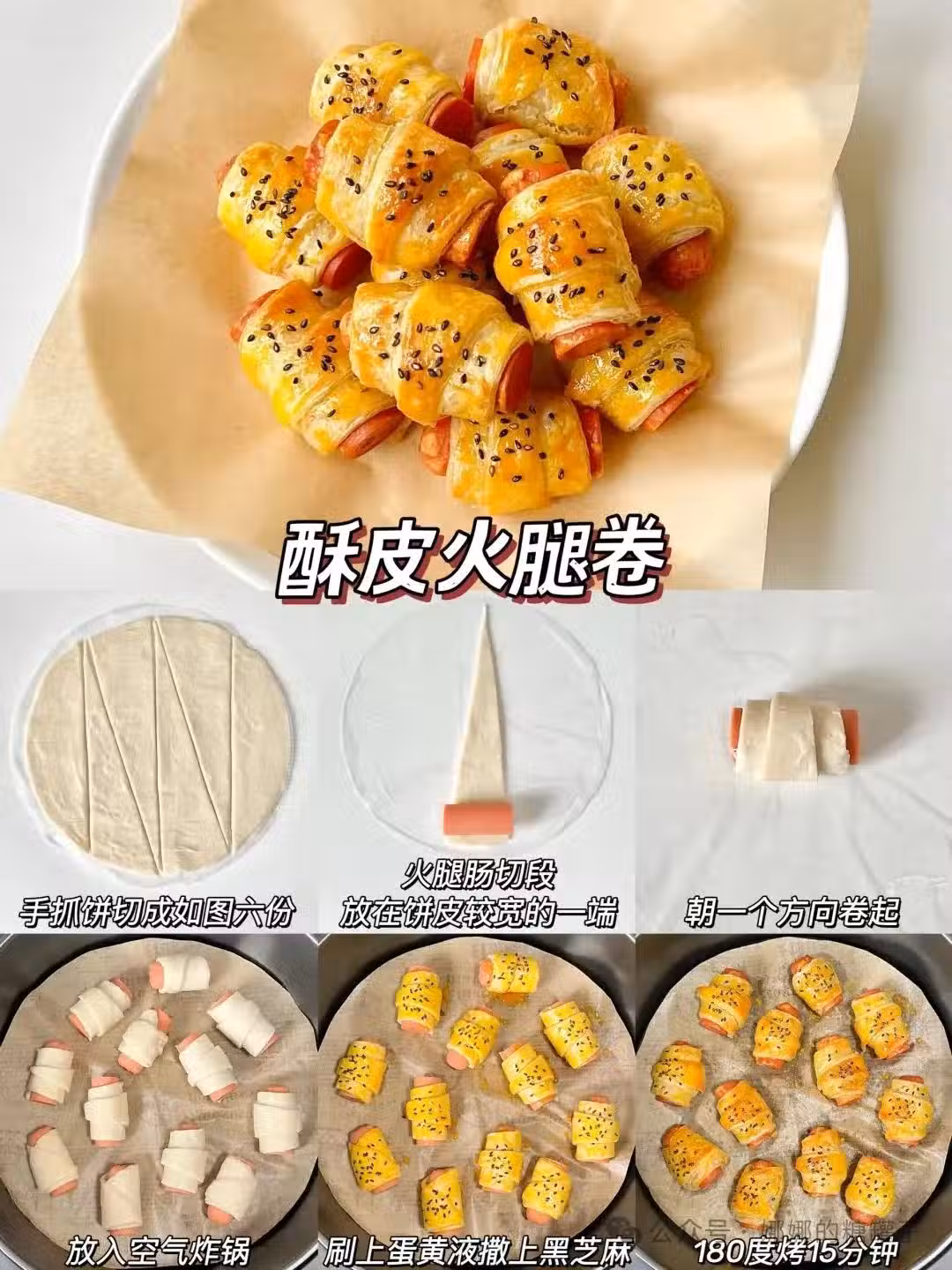 5.刷上蛋黃液,撒上黑芝麻。 6.180度烤15分鐘。