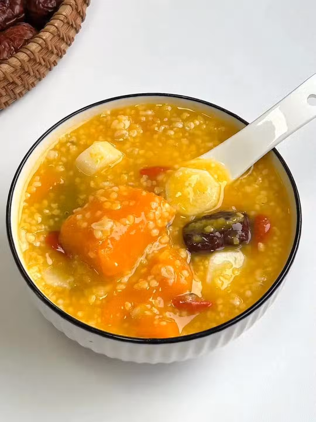 ✔食材:南瓜,山藥,小米,枸杞,去核紅棗