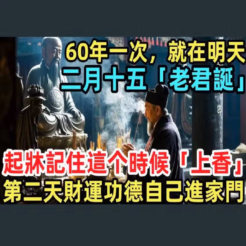 就在明天! 二月十五「老君誕」,起床記住這個時候「上香」,第二天財運功德自己進家門!