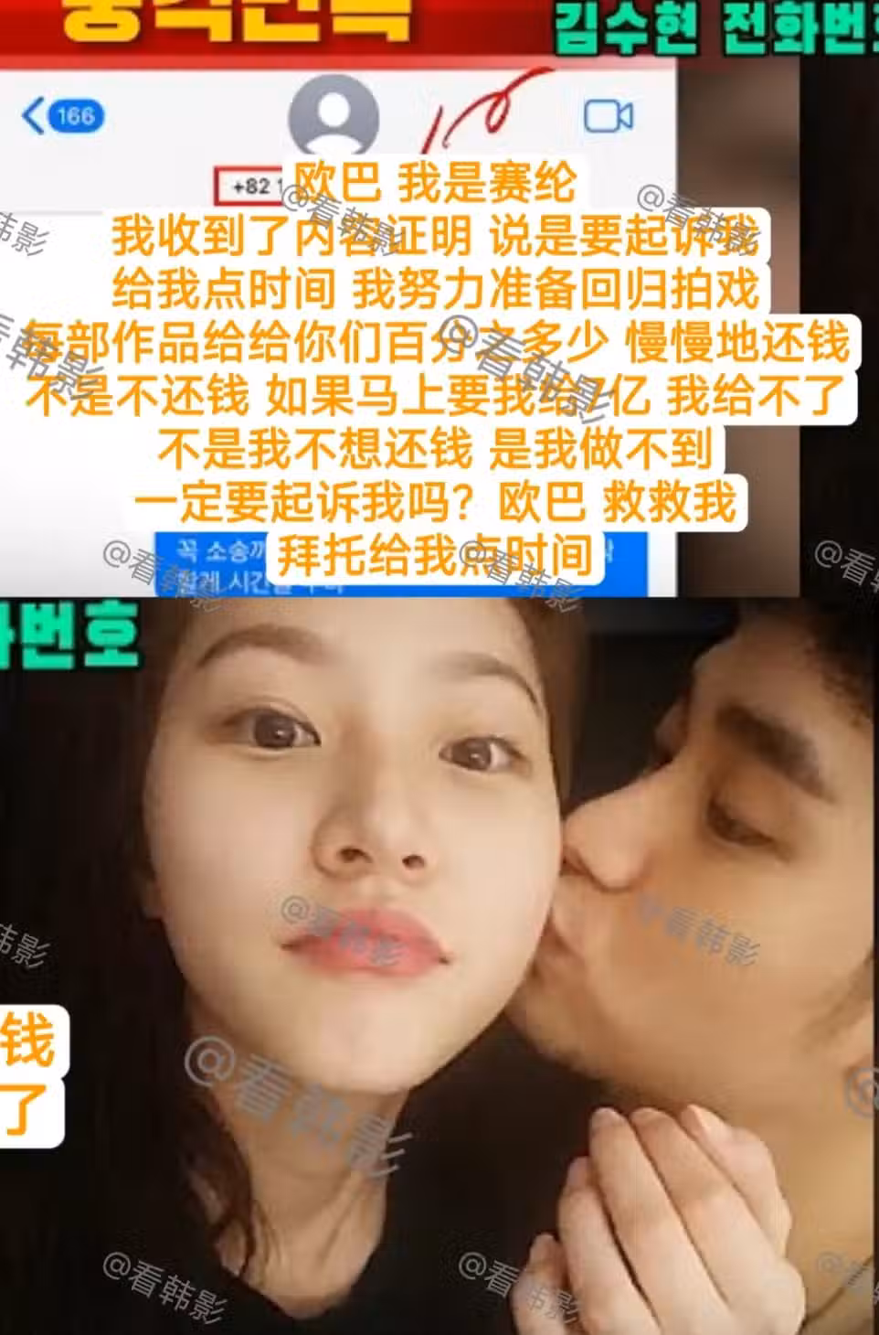卻再次遭到了男方粉絲的網暴。 金秀賢公司更是發聲明稱不知道照片哪來的。 仿佛她只是一個瘋女人。 而哪怕這樣,金賽綸還對他抱有僥倖。 覺得這是公司行為,金秀賢並不知情。 直到她開始收到無數記者的聯繫。 她這才知道,原來金秀賢反手就將自己的聯繫方式爆給了韓國媒體。