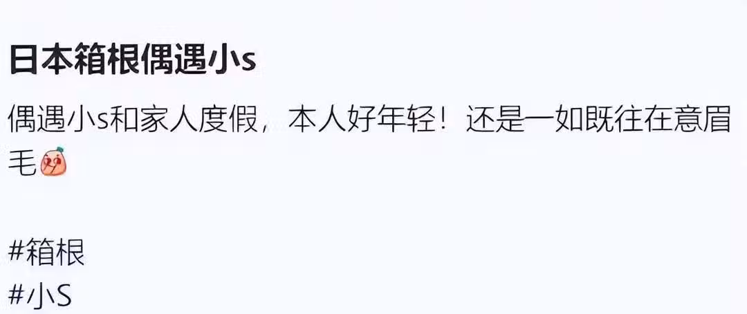 網友曝偶遇小S她們的全細節,稱小S還是一如既往的很在意她的眉毛,可能怕泡溫泉眉毛容易脫妝,一直不停補妝。導遊說大S也在當天泡了溫泉,只是沒有被該名網友偶遇到而已。