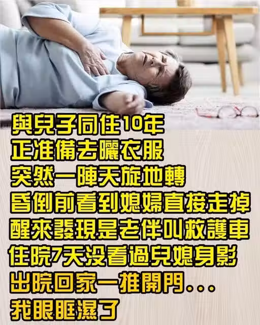 與兒子同住10年!正準備去曬衣服,突然一陣天旋地轉,昏倒前看到媳婦直接走掉,醒來發現是老伴叫救護車,住院7天沒看過兒媳身影,出院回家一推開門, 我眼眶濕了