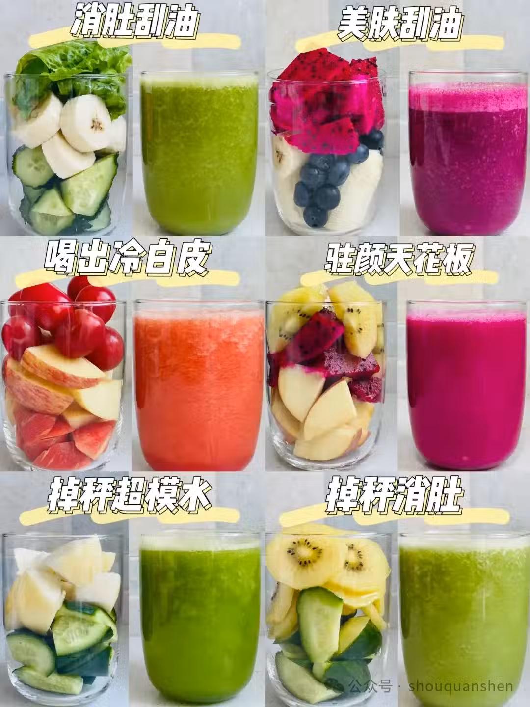 小張是一位職場白領,平時工作繁忙,經常忙到連吃飯的時間都沒有,體重逐漸攀升,尤其是肚子和大腿上的贅肉,讓她愁眉不展。她曾嘗試過很多減肥方法,健身房的月卡辦了好幾張,但每次都因為工作忙碌而放棄。直到有一天,她朋友推薦了幾款超簡單的果蔬汁,不僅減肥效果明顯,而且還能改善膚色,保持皮膚水潤。於是,小張開始嘗試,沒想到短短几天,她的體重就掉了好幾斤,皮膚也變得更加光滑了。現在,她每天都會花幾分鐘時間,製作這些清爽的果蔬汁,既能減脂又能美膚。