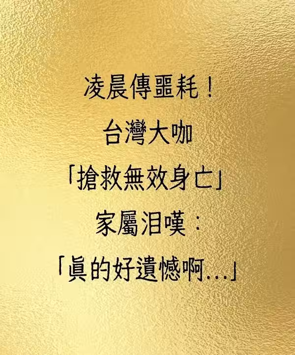 凌晨傳噩耗!台灣大咖「搶救無效身亡」 家屬淚嘆:「真的好遺憾啊...」