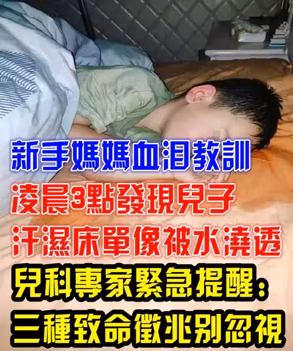 新手媽媽血淚教訓!凌晨3點發現兒子「汗濕床單」像被水澆透,兒科專家緊急提醒:3種致命徵兆別忽視