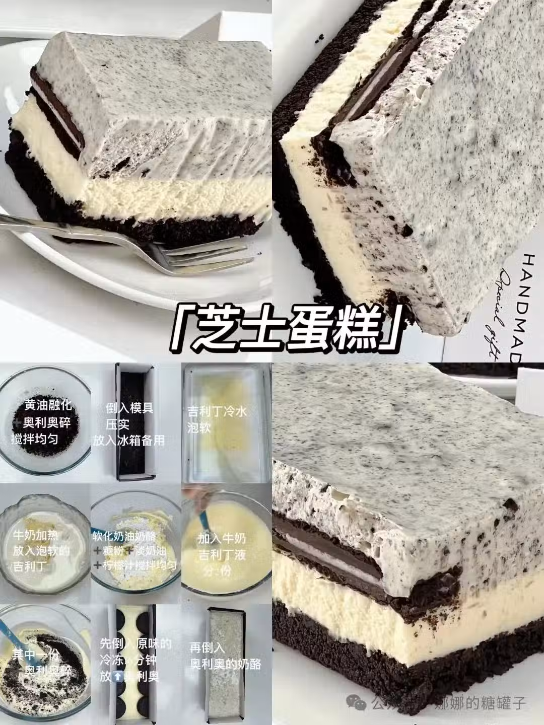 食材:黃油35克、奧利奧碎100克、奶油奶酪300克、糖粉60克、檸檬汁20克、淡奶油120克、吉利丁10克、牛奶90克、奧利奧適量、奧利奧餅乾5片。