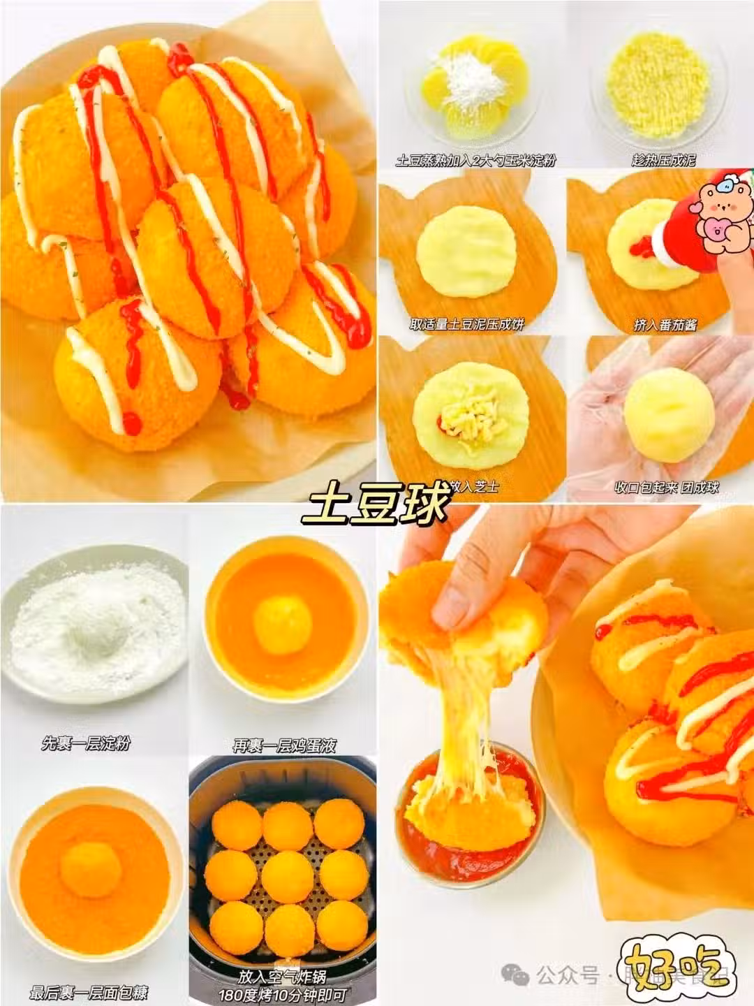 10. 爆漿芝士土豆餅:土豆泥包裹著芝士碎,團成餅狀,下鍋煎至兩面金黃。咬開的瞬間,芝士拉絲,奶香和土豆香完美融合,芝士控千萬別錯過。
