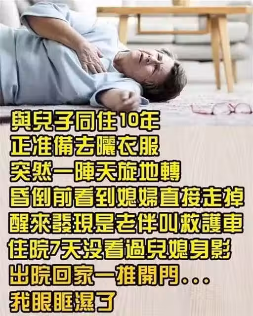 與兒子同住10年!正準備去曬衣服,突然昏倒、媳婦直接走掉,醒來發現是老伴叫救護車,住院7天沒看過兒媳身影,出院回家一推開門, 我眼眶濕了