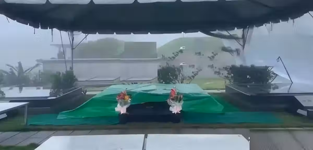 15日安葬當天下大雨,所以大S的墓位上撐著一個白色的雨棚。