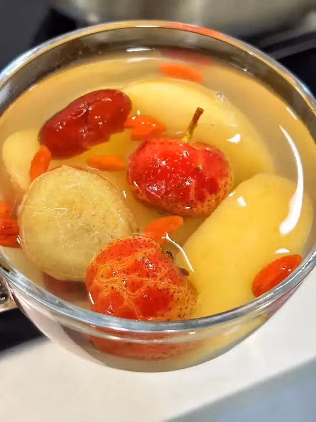 這款刮油湯的神奇之處可不止於美味。它的食材中,蘋果富含果膠,能吸附腸道油脂;山楂健脾開胃、消食化積;紅棗補中益氣,枸杞滋補肝腎,生薑則能驅寒暖身。
