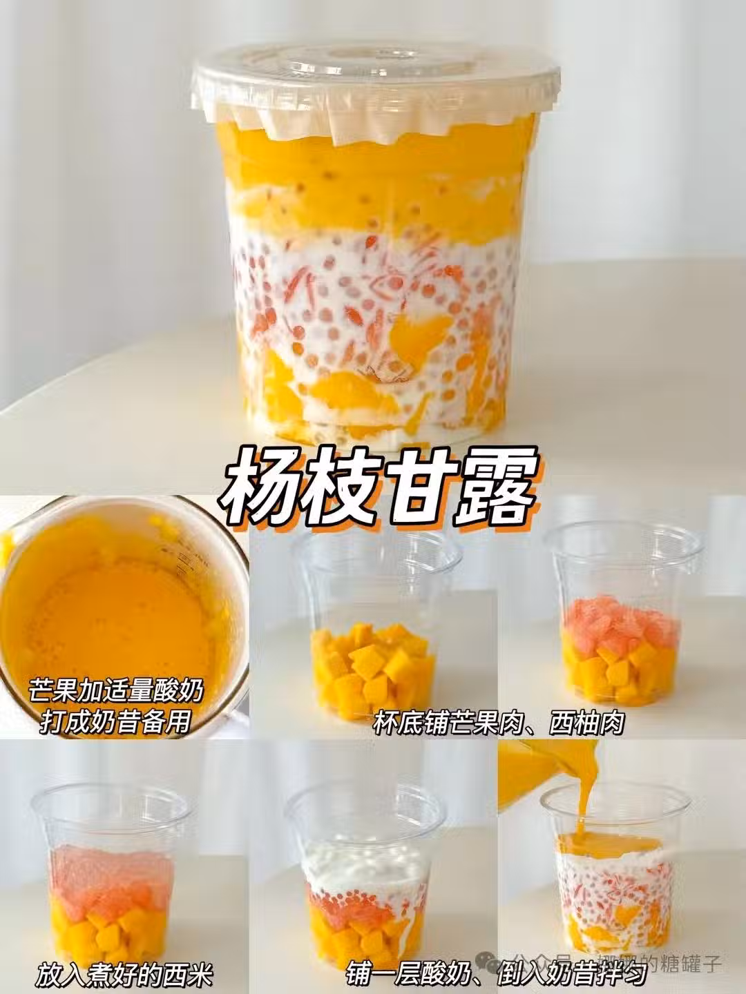 做法:1.準備食材。2.火龍果加水榨汁取300毫升、加10克白涼粉煮至融化。3.微涼倒入杯中定型。4.放入煮熟的西米。5.加奶攪勻即可。