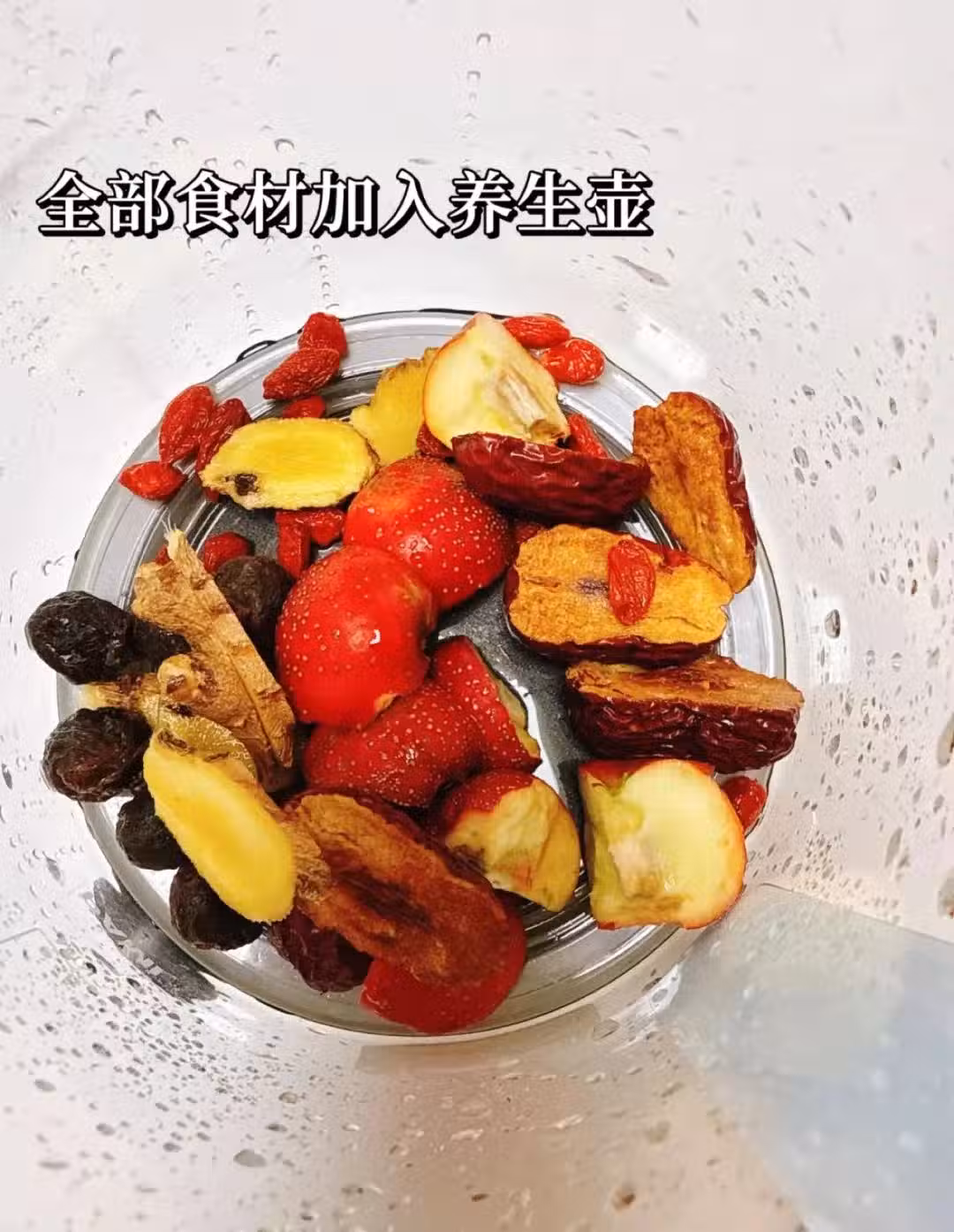 ✅食材:紅棗3顆、桂圓6顆、鮮山楂3顆、生薑片若干、枸杞若干、紅糖(可加可不加)