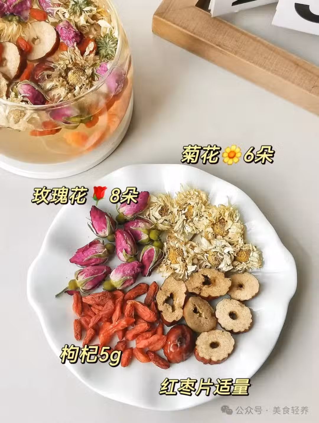 小貼士:玫瑰可以理氣解郁,菊花枸杞清肝明目,搭配一起清肝解郁,明目養肝。