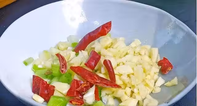 3.將腌好的包菜用清水洗凈,控水後裝入盤中。炒鍋中油熱,倒入蛋液快速煎成大塊,盛出備用。