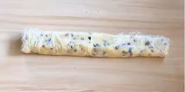 3.取出麵糰,切成約0.5公分的塊,在烤盤上放一張吸油紙,擺上餅乾,烤箱預先上下火160度,預熱五分鐘,烤盤放入烤箱,上下火160度,烤25分鐘即可。