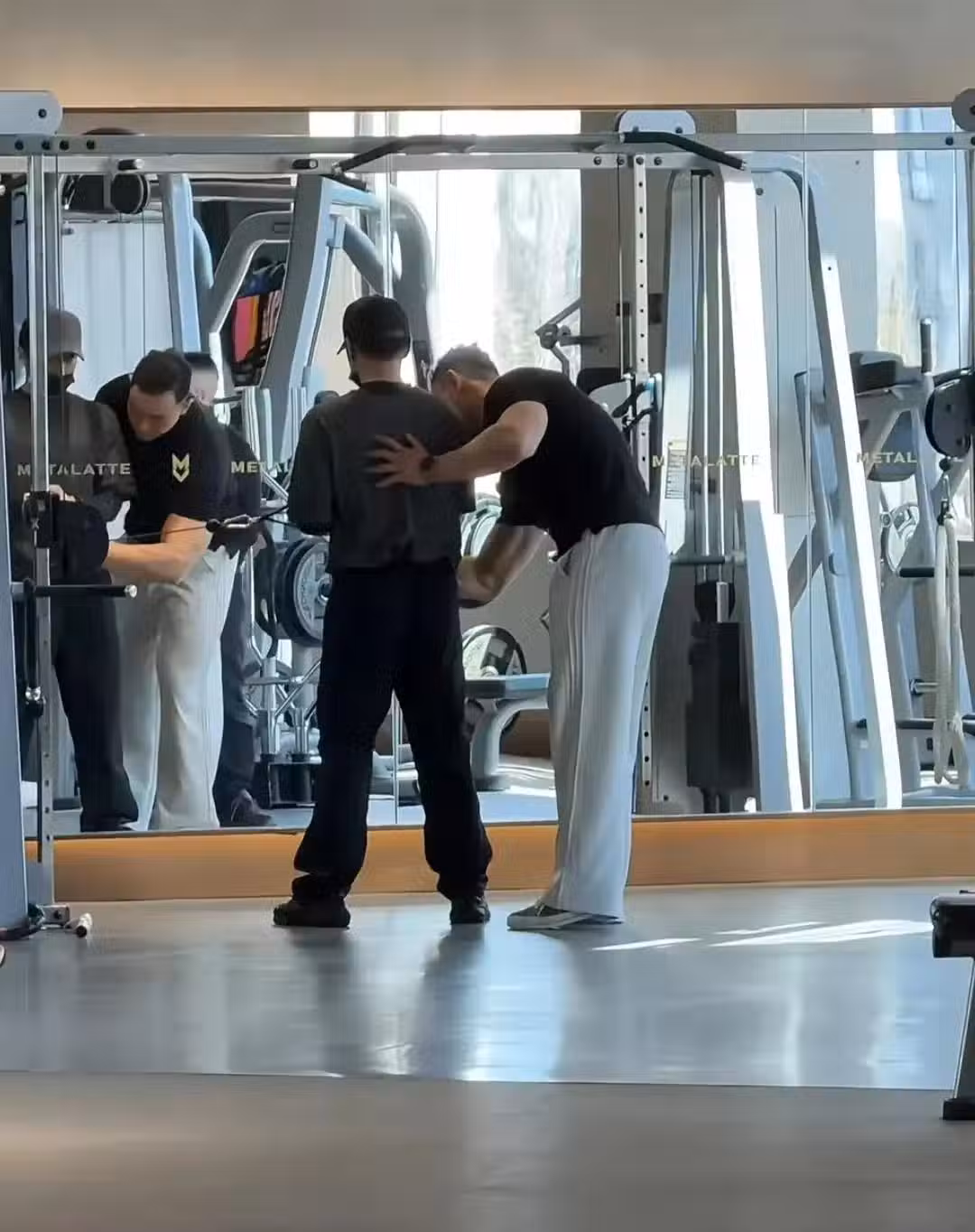即使在健身時,他都沒有摘下口罩,真的夠低調的。