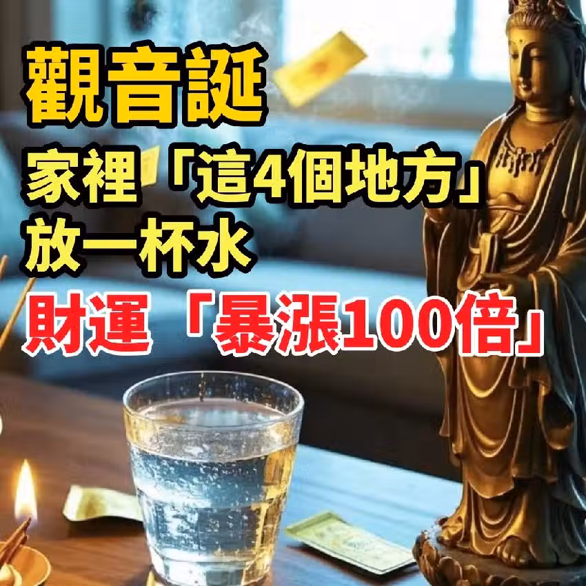 水能催財!觀音誕在家裡「這4個地方」放一杯水,財運「暴漲100倍」太靈驗了