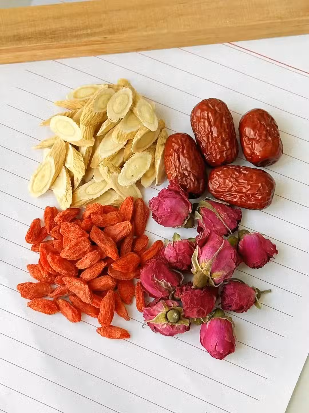 煮法:紅棗黃芪先煮10 分鐘左右,再放入枸杞玫瑰,也可以用保溫壺70-80度水悶泡