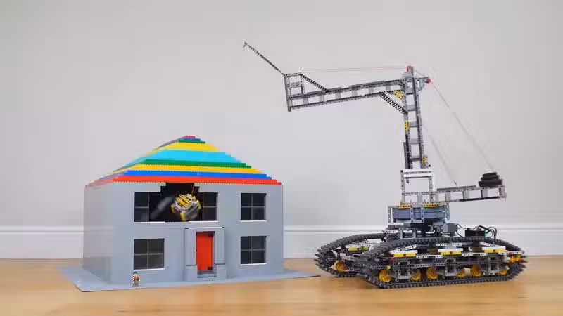 網友實驗用樂高大鐵球拆房子,唯一缺點就是機器有點承受不重