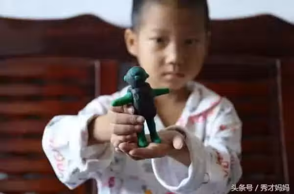 回到家貝貝拿出自己的粘土聚精會神地捏了一個機器人,還說要把這個送給爸爸媽媽當作禮物,以後想他的時候就看看這個機器人。