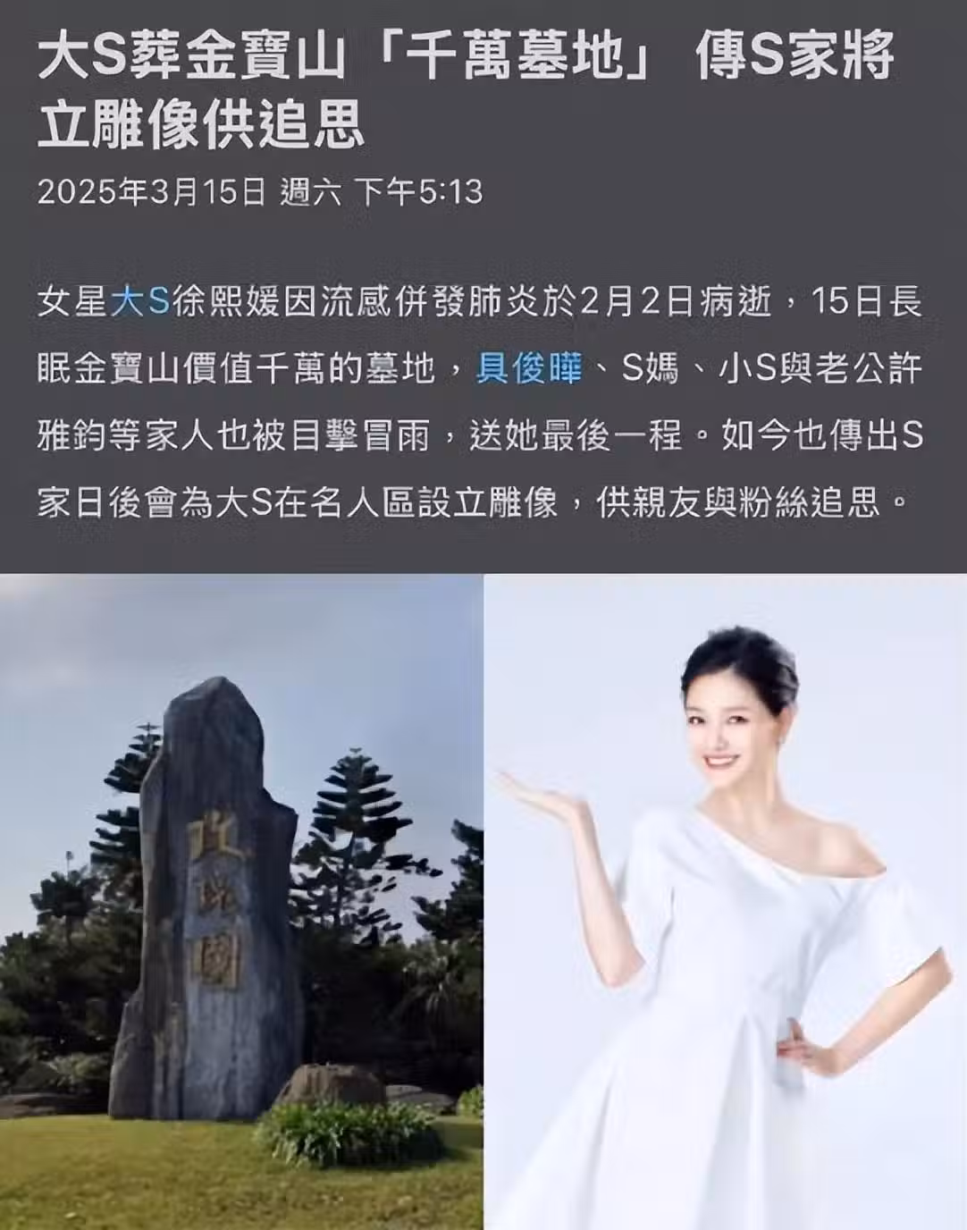 大S墓園雕像位置已確定,大批粉絲提前往金寶山墓園參觀悼念