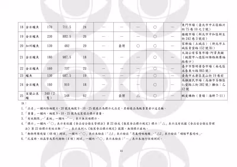 其中有2件檢出「動物用藥殘留標準」非核准使用於水產藥物的問題,包括黃花魚檢出「恩氟喹啉羧酸」(enrofloxacin)、午魚檢出「磺胺甲基噁唑(sulfamethoxazole)」,針對這兩種藥劑,消基會補充說明,「恩氟喹啉羧酸」是一種合成的廣效性殺菌劑,為合法動物用藥,可以有限量殘留的動物種類為牛、豬及家禽類,殘留部位不同限量也不同,但並未核准使用於水產品!