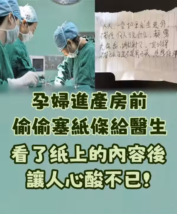 孕婦進產房前偷偷塞紙條給醫生,看了紙上的內容後讓人心酸不已!