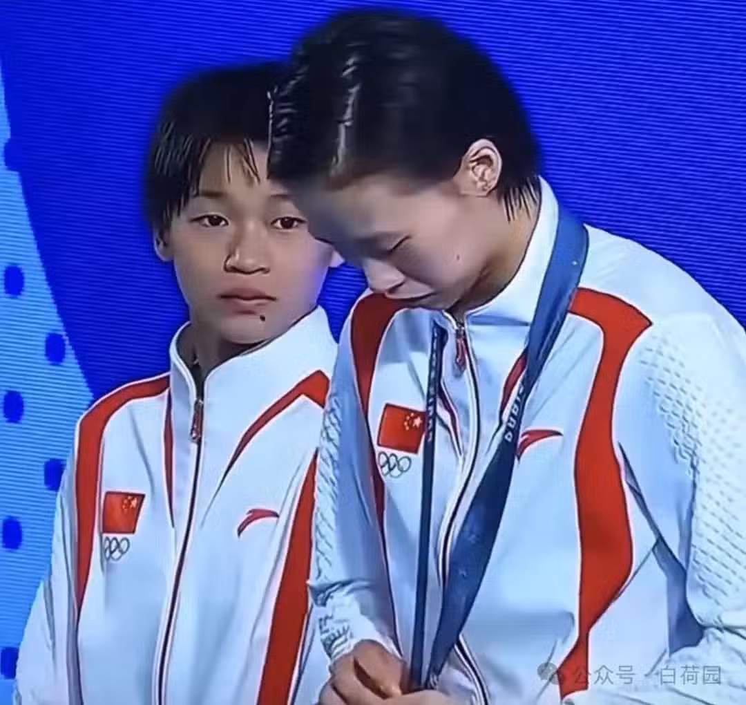 這一張是全紅嬋和陳芋汐在領獎台上的合影。在巴黎奧運會單人10米台決賽中,全紅嬋以總分高於陳芋汐4.9分的成績獲得冠軍,陳芋汐獲亞軍。