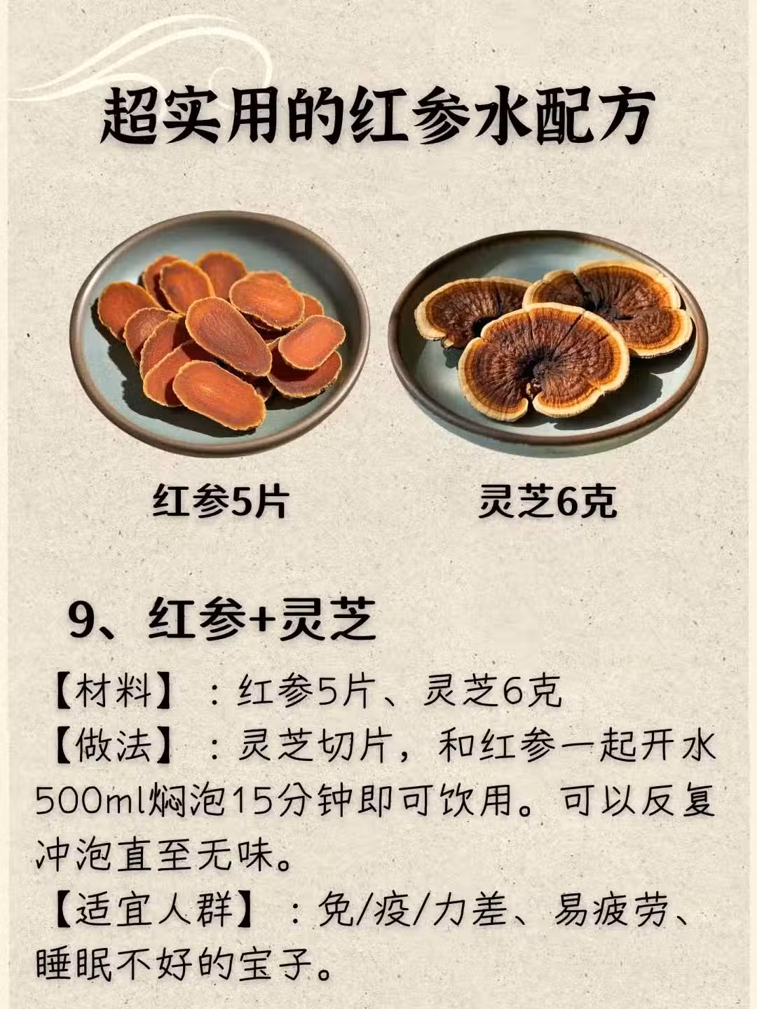 1. **少量久服**:紅參滋補性強,建議每日1-3克,長期服用效果更佳。