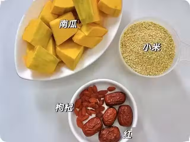 1.小米、南瓜、紅棗一起下鍋,加水煮30分鐘;