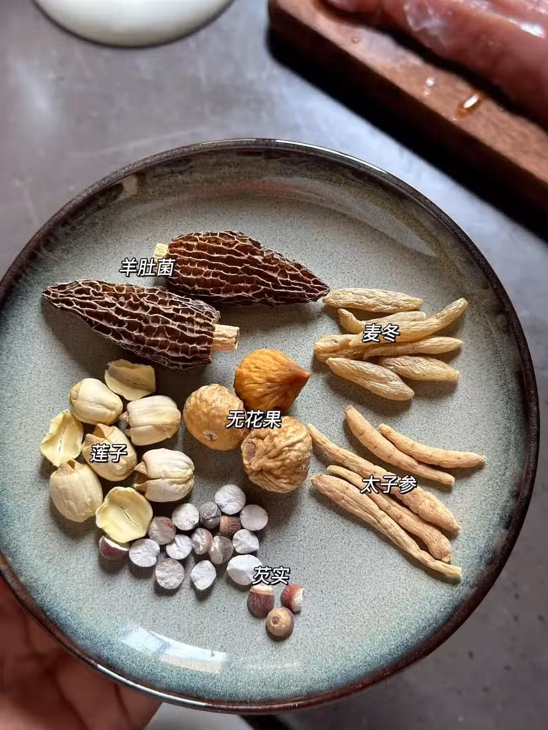 肉洗凈切塊再剁碎,鋪在碗里,其他食材洗凈一併放入燉盅,加入涼白開(非生水)浸泡30分鐘,上鍋蒸40-60分鐘,最後按喜好加鹽調味即可