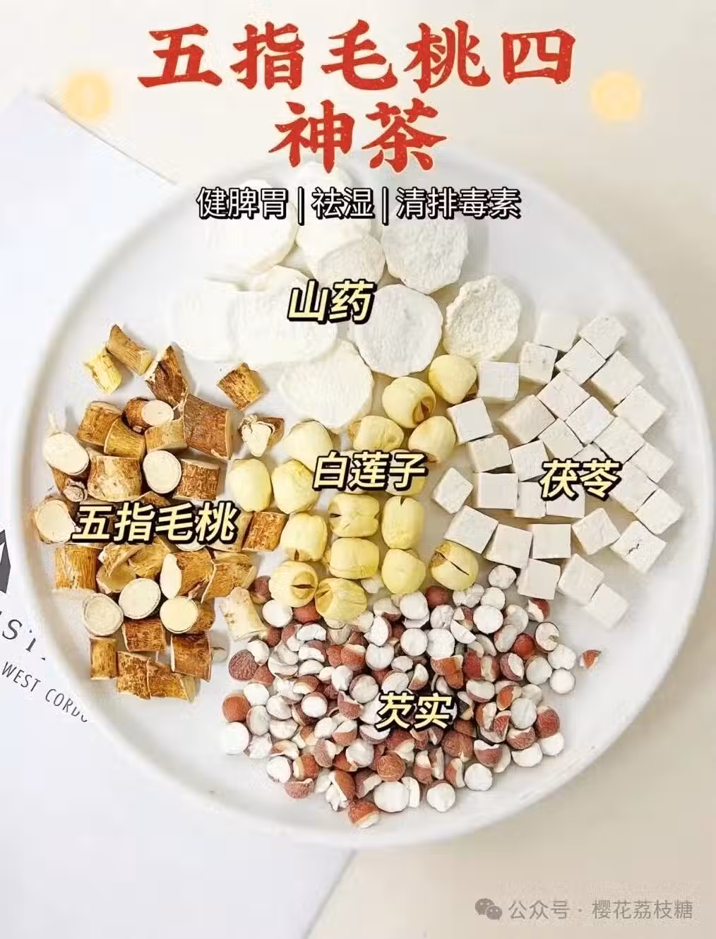 4️⃣五指毛桃四神水:五指毛桃,茯苓,芡實,蓮子,懷山,紅棗