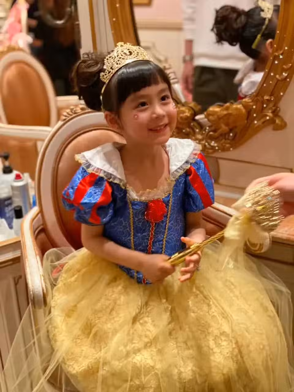 楊怡羅仲謙幫女兒實現當公主願望,5歲小珍珠變白雪公主,好漂亮!