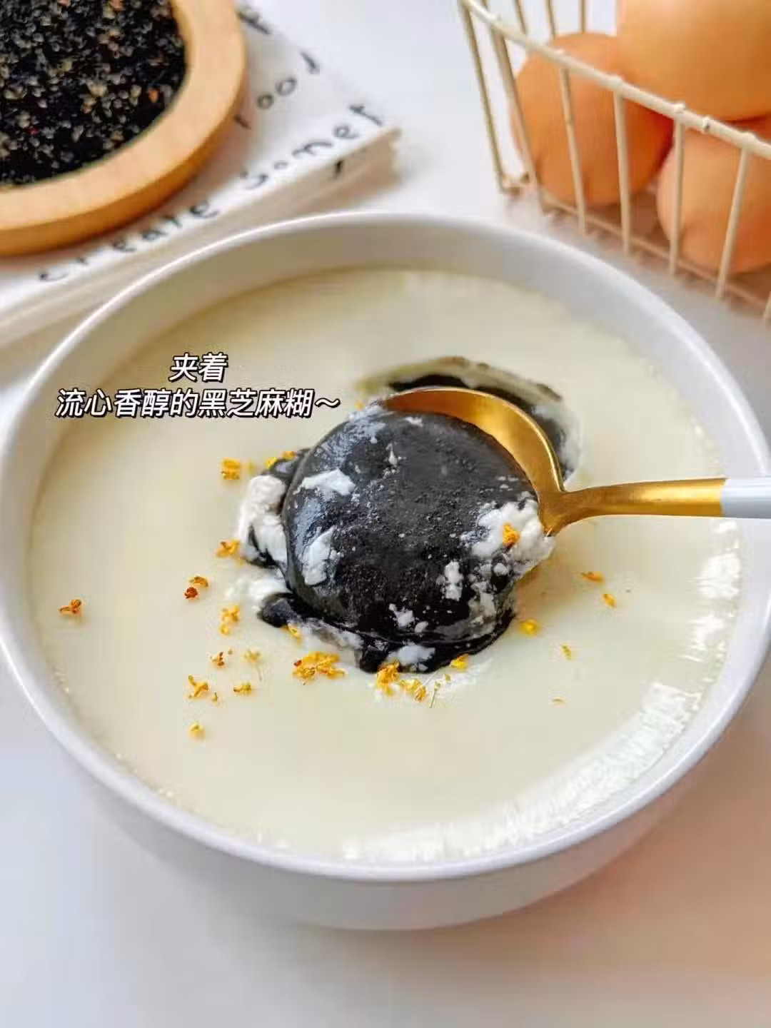 1.糯米淘洗乾淨後和黑芝麻、冰糖一起倒進破壁機,再加入200ml清水開啟豆漿模式,打好的黑芝麻糯米糊倒到碗里晾涼