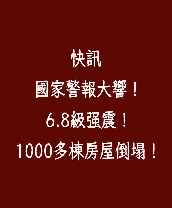 快訊/國家警報大響!6.8級強震!逾千棟房屋倒塌!