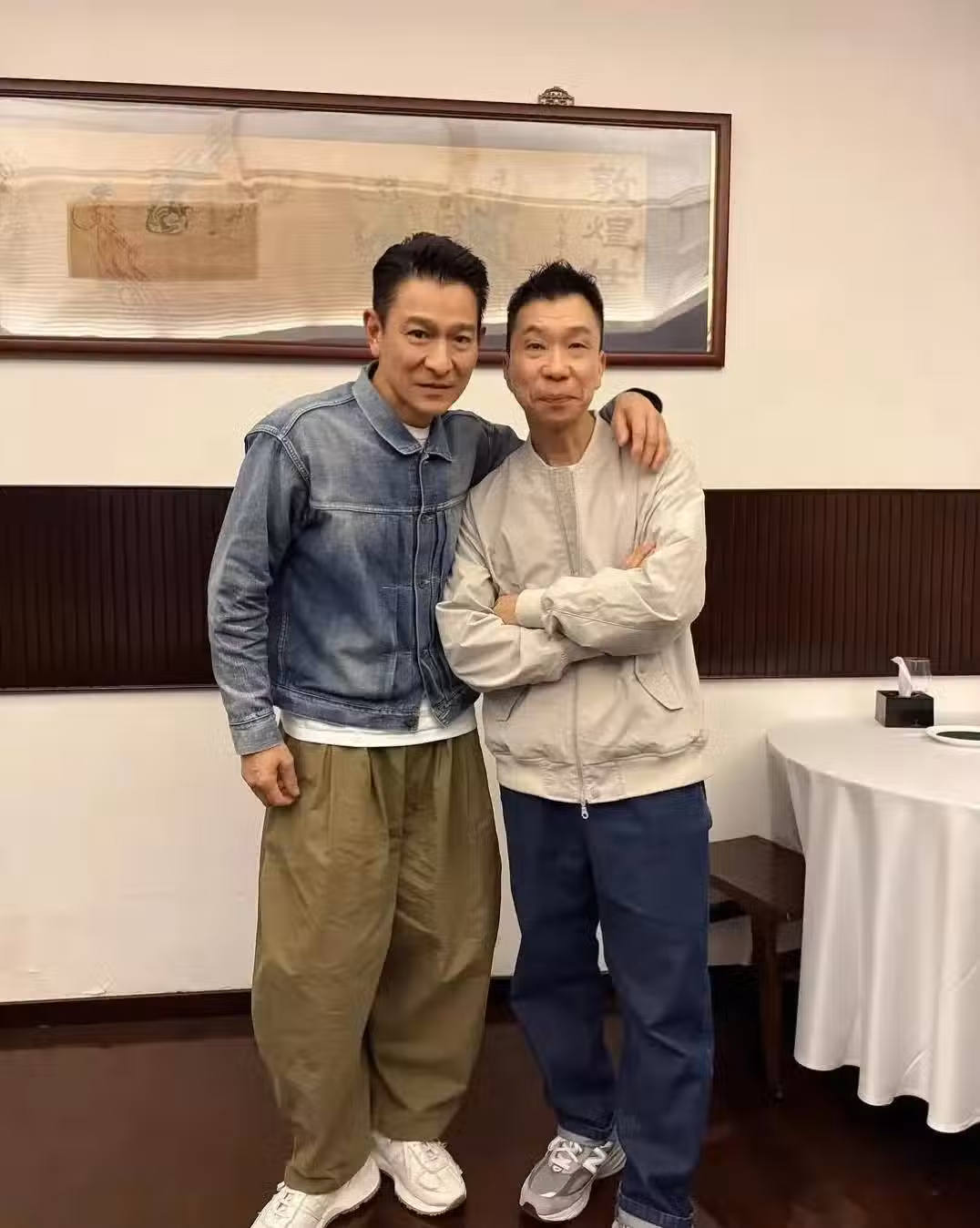 63歲劉德華和朋友聚餐,身材幹瘦,脖子前傾體態差,本人蒼老好多!