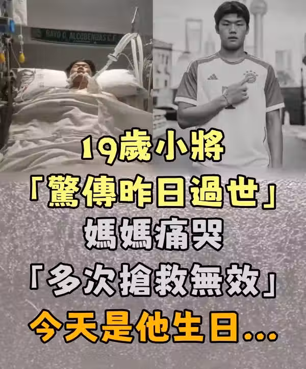 19歲小將「驚傳昨日過世」!媽媽痛哭「多次搶救無效」:今天是他生日...