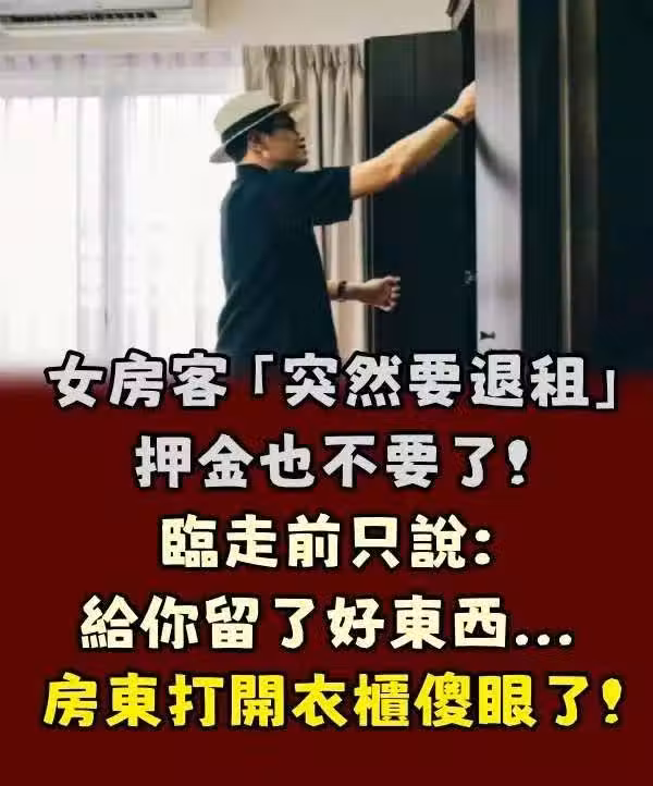 女房客「突然要退租」押金也不要了!臨走前只說給你留了好東西...房東打開衣櫃傻眼了~
