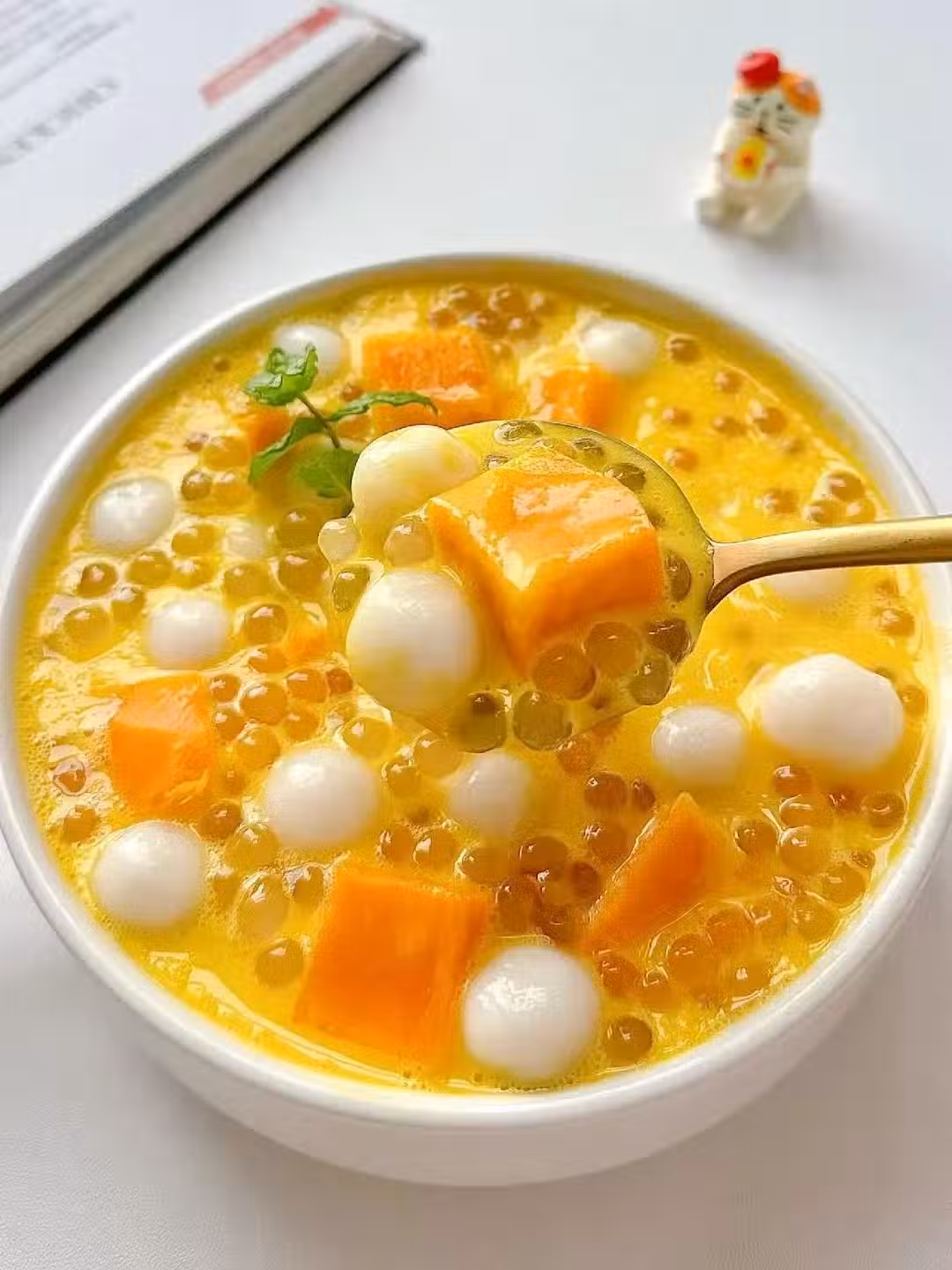 最後還是米米幫他做決定,就做芒果圓子西米露吧,Q彈香糯的,他老豆也愛吃,當早餐都沒問題。