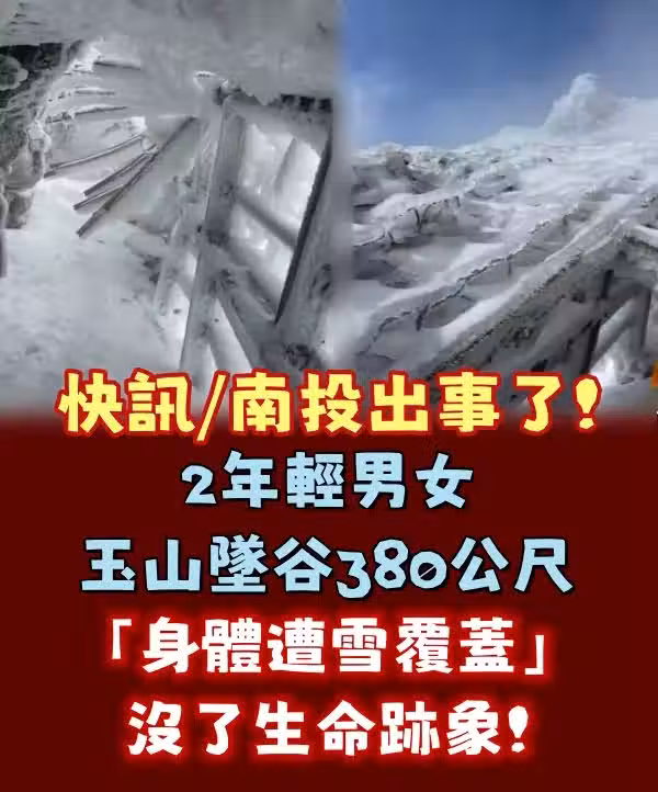 快訊/南投出事了!2年輕男女玉山墜谷380米「身體遭雪覆蓋」 早已沒了生命跡象……