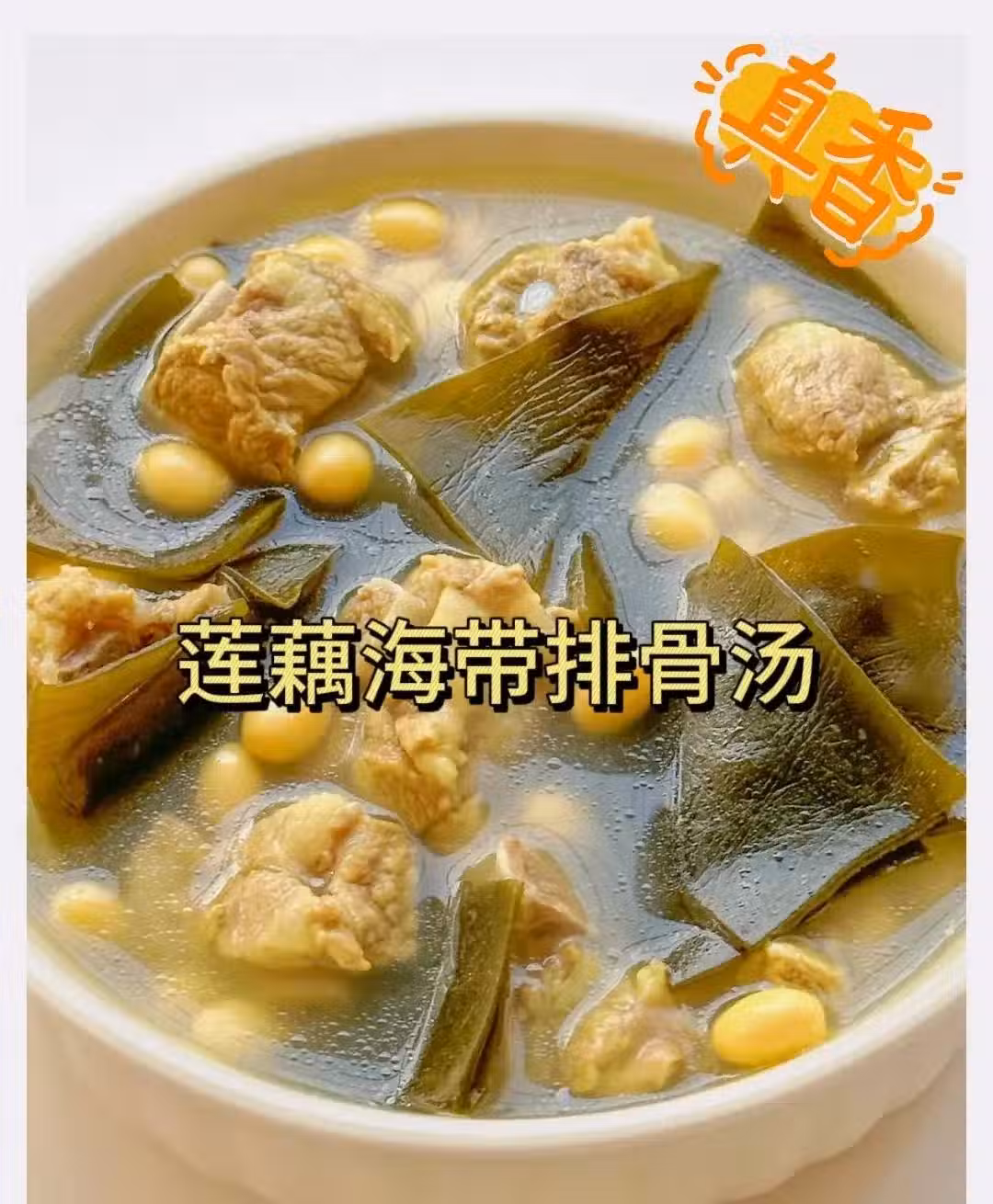 ②蓮藕去皮切塊,海帶洗凈切塊。 ③鍋中放入排骨,加入適量熱水。 ④放入蓮藕和海帶,大火煮開。 ⑤倒入電壓力煲中煲30分鐘(或用燉盅燉1個半小時)。